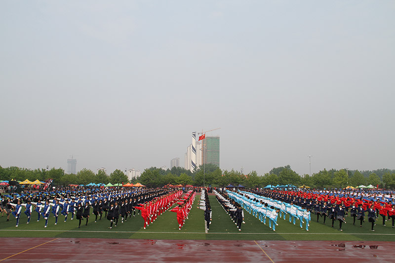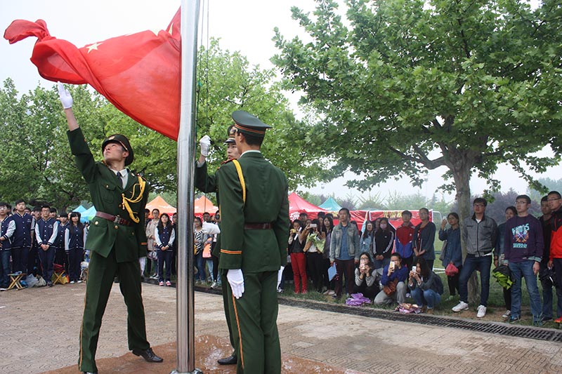 学院方队入场后,举行升旗仪式,伴随着国歌,五星红旗在师生的注目礼下冉冉升起。马东骅致开幕词,首先他代表学校领导向筹备本次运动会的工作人员、教练员表示诚挚的谢意。他表示,今年是建校60周年,在全校同贺校庆、共创未来的氛围中,举办本次运动会对于增强全校师生的凝聚力、向心力、认同感、使命感有着重要作用,有利于促进学校事业的科学发展、健康发展、和谐发展、跨越发展。他积极肯定了学生们平日在运动场上的刻苦训练,希望通过此次运动会的举办,能够激发广大师生加强体育锻炼的兴趣和热情,使大家感受到生命的美好,享受运动的快乐,追求更高、更快、更强的目标。最后,马东骅预祝本次运动会取得圆满成功。随后,裁判员代表和运动员代表宣誓严守竞赛规则,维护体育道德,确保比赛公平公正。
