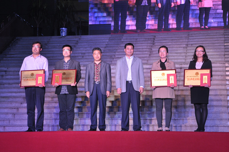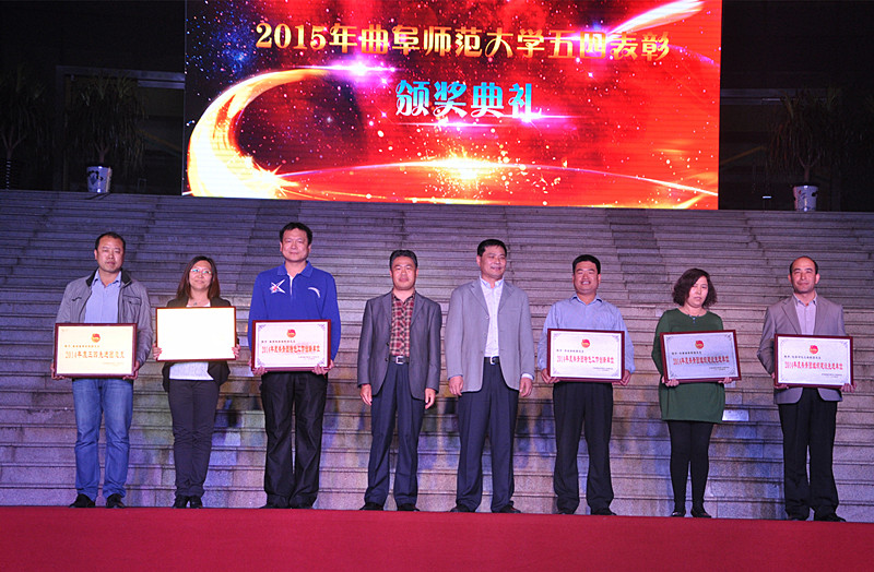 在热烈的掌声中,学校领导为2014年我校共青团工作先进集体和个人颁奖。校长戚万学为“百家社团迎校庆”活动揭幕。