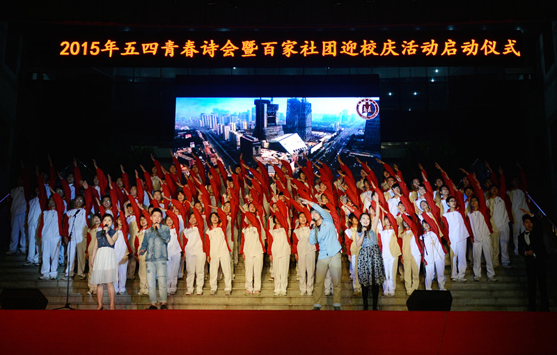 4月29日晚,由校团委和学生工作处主办的五四青春诗会暨百家社团迎校庆活动启动仪式隆重举行,曲园学子欢聚一堂,用自己的方式向五四运动96周年致敬,向曲园60岁华诞献礼。学校领导戚万学、扈庆学、郭辰夫及学校办公室、各部处和各学院相关负责人出席了晚会。
