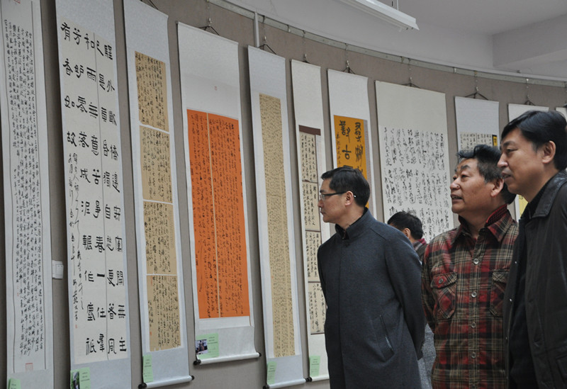 为迎接我校建校六十周年,推动高校书法艺术教育发展,12月28日,由我校与山东省教育书法家协会主办的山东省大学生书法篆刻展在我校举行。山东省教育厅巡视员、教育书法家协会常务副主席王积众,我校副校长张洪海,开元奖学金注资人和本次活动捐助人张殿玉先生,山东省教育书法家协会办公室主任刘金峰出席活动。来自省内书法专业和各高校书法社团的大学生参加了此次活动。