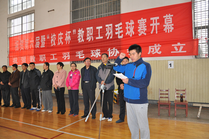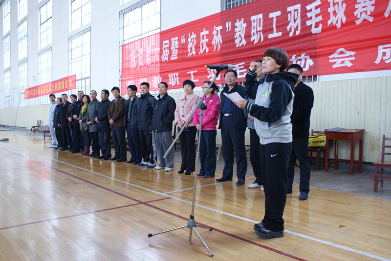 工会主席王万民致开幕词,指出在我校六十周年校庆之际,举办的本次教职工羽毛球赛是广大球迷期盼已久的大事,也是曲师大人文化生活中的一件大事。同时,今天也是教职工羽毛球协会成立的日子,此后球迷们就有了自己的组织,自己的家,必将在丰富教职工文化生活,提高身体素质,提升生活质量方面起到积极影响。