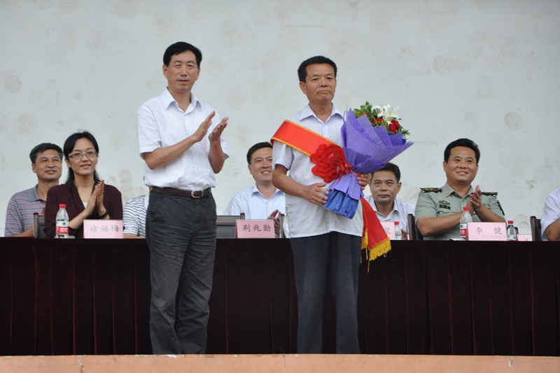 党委书记荆兆勋代表学校,向获得“全国模范教师”、“全国高校优秀思想政治课教师”荣誉称号的张瑞甫教授献上鲜花,向他表示热烈祝贺和诚挚祝福。