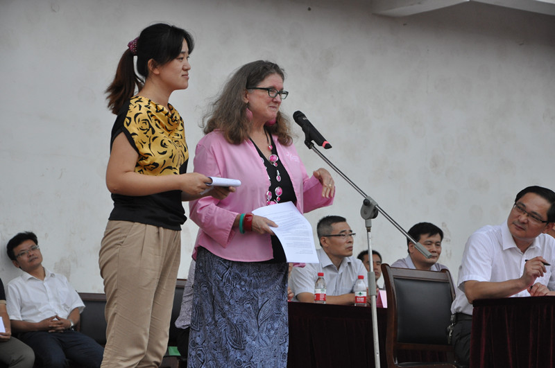 教师代表唐爱民、李磊,外籍教师代表狄爱林、Gary,在校生代表和新生代表分别作了发言。