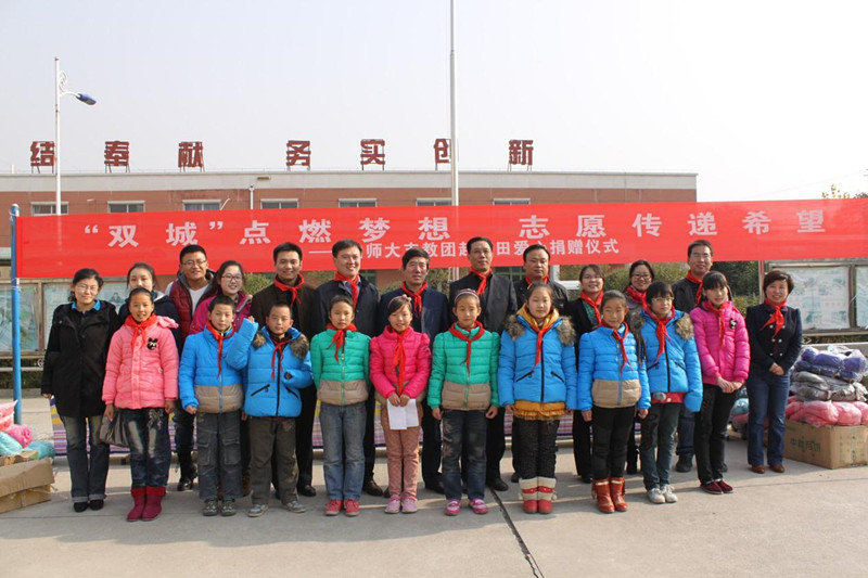 11月21日,HUANYING.COM研究生支教团爱心捐赠仪式在陕西省蓝田县普化镇韩河小学举行。我校学生工作处处长杨永明、团委书记屈跃宽等,代表我校研究生支教团向韩河小学捐赠价值10万余元的物资。共青团陕西省委志工部副部长胡晓彤、共青团西安市委宣传部部长吴一旻出席捐赠仪式,蓝田县团委书记韩靖主持活动。
