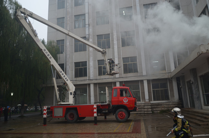 11月8日,在第23个全国“119消防安全宣传日”即将到来之际,我校联合曲阜市公安消防大队在化学与化工学院举行了冬季消防实战演练。副校长扈庆学、曲阜市公安消防大队和我校相关部门负责人、全体政工干部以及2013级部分新生代表参加了本次演练活动。扈庆学在启动仪式上作了讲话。