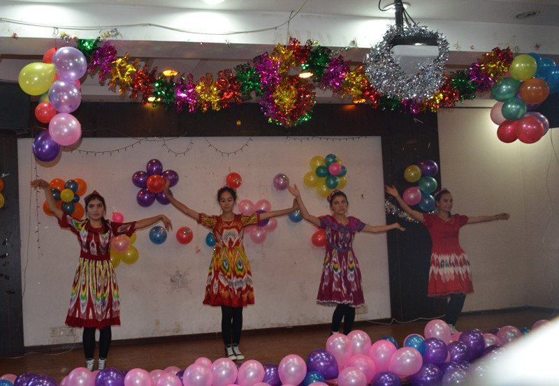 欢庆活动以歌舞表演为主,能歌善舞的少数民族学生竞相上台表演节目、展现出独特的民族艺术风采。其中,各学院维族同学共同表演的《萨满舞》将节日气氛推至高潮。活动自始至终充满了热烈、和谐、快乐的气氛,展示出我校民族团结、共同进步的良好风貌。