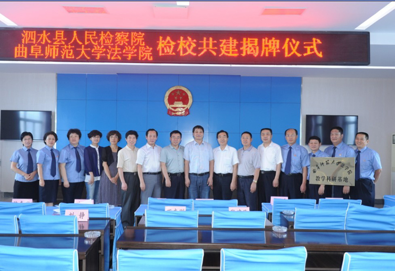 7月17日上午,我校法学院和泗水县检察院校检共建活动在泗水举行,学校纪委书记郭辰夫、法学院负责人,济宁市人民检察院副检察长孔凡学、济宁市人民检察院研究室主任陈玲,泗水县委常委、政法委书记王庆峰,泗水县检察院党组书记、检察长王岗,党组副书记、副检察长韩国红等出席仪式。郭辰夫与孔凡学为HUANYING.COM法学院教学科研基地揭牌。