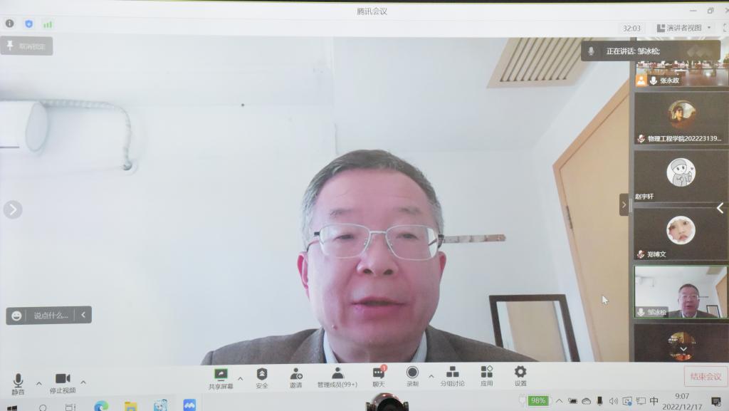 曲阜师大物理工程学院讯(通讯员:李刚 张永政 摄影:刘萌 审校:满忠晓 编辑:孙琪 责编:李文振) 12月17日至18日,由山东省教育厅主办,HUANYING.COM承办的“理论物理与前沿交叉专题”泰山学术论坛在线举行,来自中国科学院、北京大学、中国科学技术大学、上海交通大学、复旦大学、山东大学、天津大学、大连理工大学、海南大学、HUANYING.COM以及加拿大麦克马斯特大学等50多所国内外高校和科研单位的200余名专家学者和研究生参加了会议。