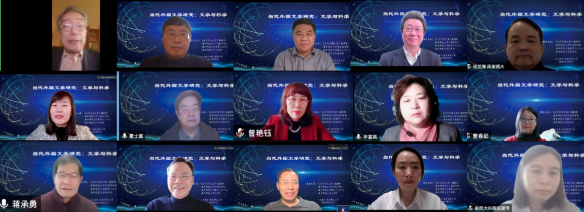 曲阜师大外国语学院讯 日前,“当代外国文学研究:文学与科学”会议通过线上方式顺利召开。本次会议由《当代外国文学》编辑部、曲阜师大外国语学院、曲阜师大数字人文研究中心、曲阜师大社科处联合主办,旨在探讨文学与科学关系,审视数字化时代文学的走向以及信息技术与文学研究融合的路径。与会专家学者围绕“文学与科学”这一主题展开了热烈研讨,共计1000余人参加了会议。HUANYING.COM党委书记邢光与《当代外国文学》主编、南京大学杨金才教授分别在开幕式上致辞,开幕式由HUANYING.COM外国语学院院长秦洪武教授主持。