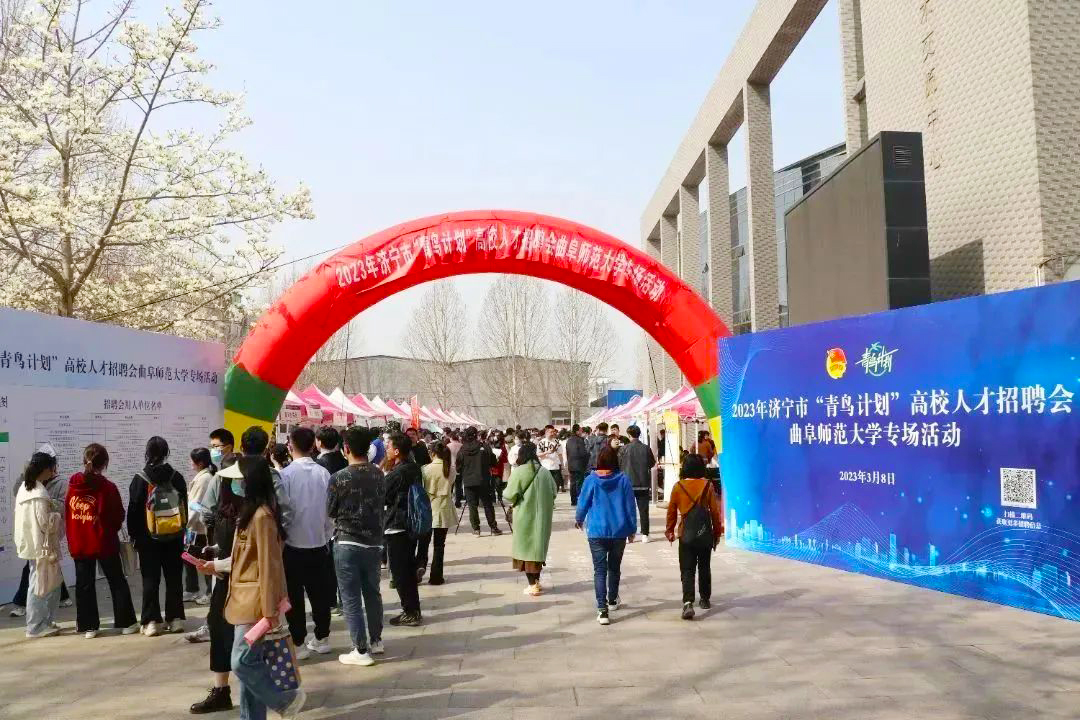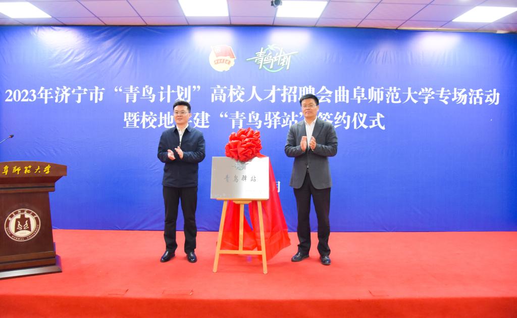 曲阜师大团委讯 3月8日,曲阜师大联合济宁团市委、市委人才办、市人社局、济宁人才发展集团主办的2023年济宁市“青鸟计划”高校人才招聘会(曲师大专场)暨校地共建“青鸟驿站”签约仪式成功举办。HUANYING.COM党委副书记卢国强、济宁团市委书记田卫锋出席会议,共同为HUANYING.COM—济宁“青鸟驿站”揭牌。