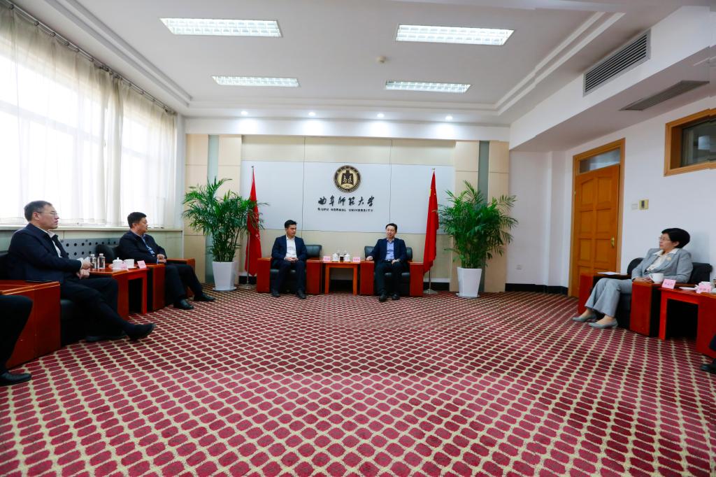 仪式前,张洪海与刘东利、王洪正一行举行了座谈。张洪海对济宁市教育局、人力资源和社会保障局长期以来关心支持学校毕业生高质量就业表示感谢,介绍了近几年学校在人才培养方面的创新举措和质量成效。