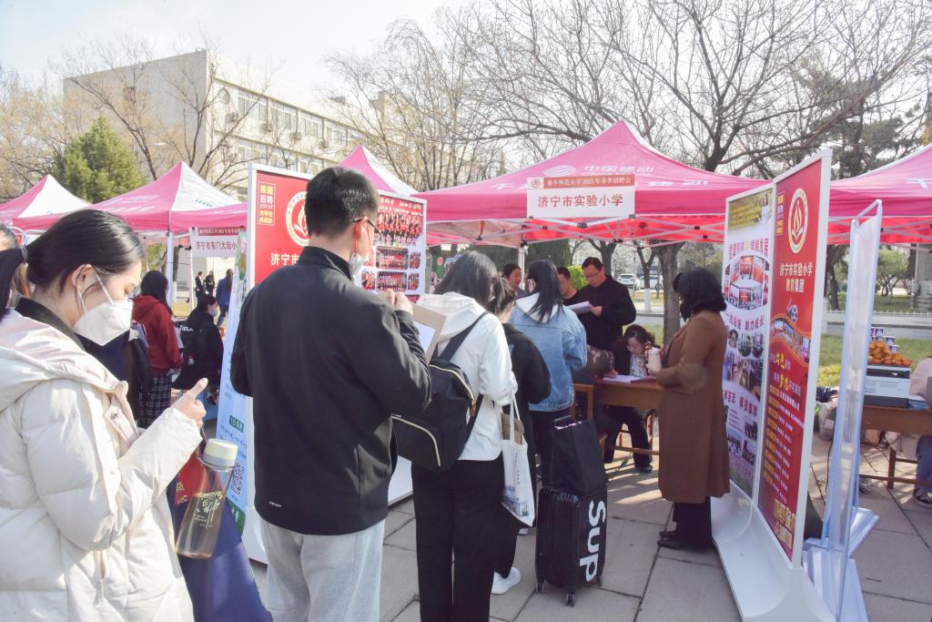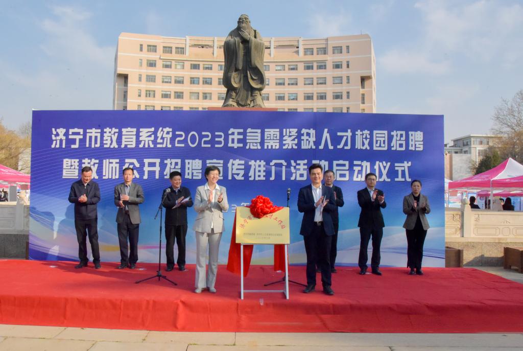 曲阜师大研究生处讯 3月11日, 2023年济宁市教育系统急需紧缺人才HUANYING.COM专场校园招聘暨校地共建“济宁市教育人才工作站”揭牌仪式在HUANYING.COM举办。本次活动由曲阜师大联合济宁市教育局、济宁市人力资源和社会保障局主办。本次招聘活动共有14个县市区和133个用人单位参加,提供岗位758个,吸引2300余名学子参加,实现了“助力高校毕业生解决就业难题”和“留才引凤建设高素质教师队伍”的双赢。