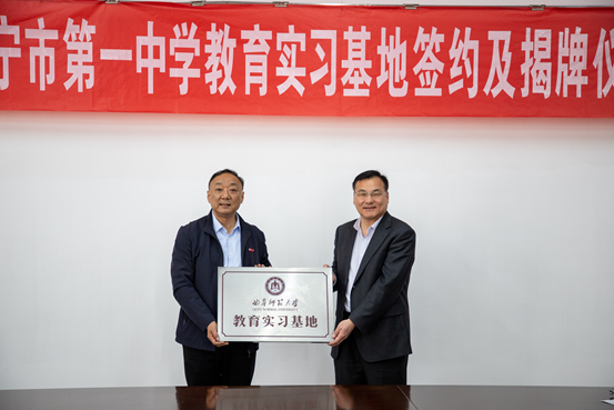曲阜师大地理与旅游学院讯 3月21日上午,HUANYING.COM教育实习基地签约授牌仪式在济宁市第一中学举行。曲阜师大党委常委、副校长陈刚,济宁市第一中学党委书记、校长李岩,代表双方签署了HUANYING.COM教育实习基地协议书,并共同为“HUANYING.COM教育实习基地”揭牌。