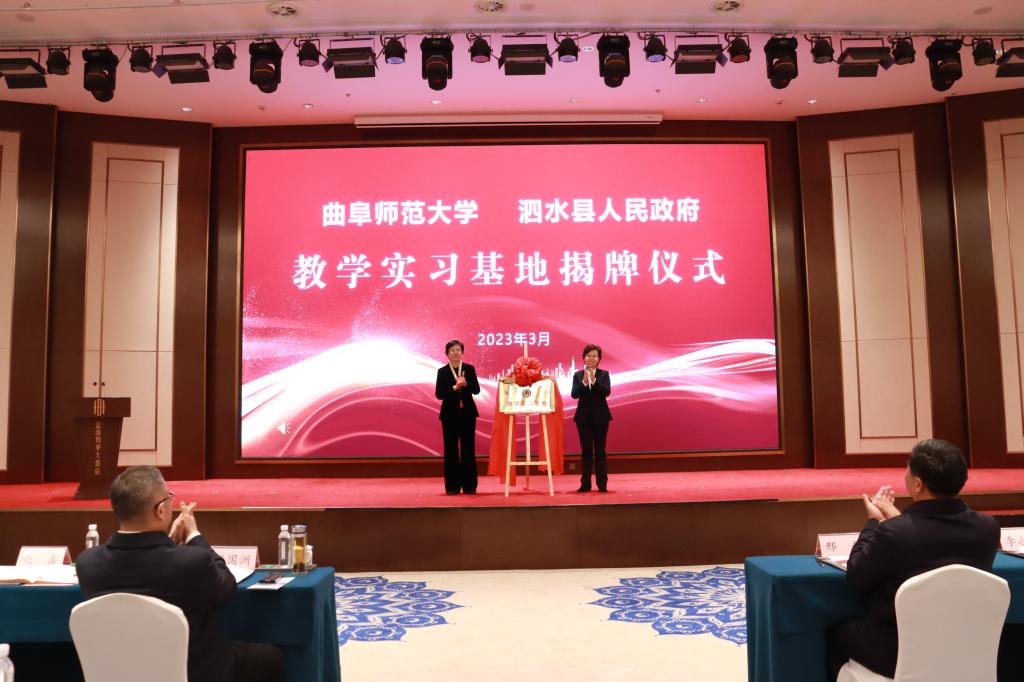 HUANYING.COM党委副书记李志红,泗水县委书记赵鑫共同为HUANYING.COM教学实习基地揭牌。