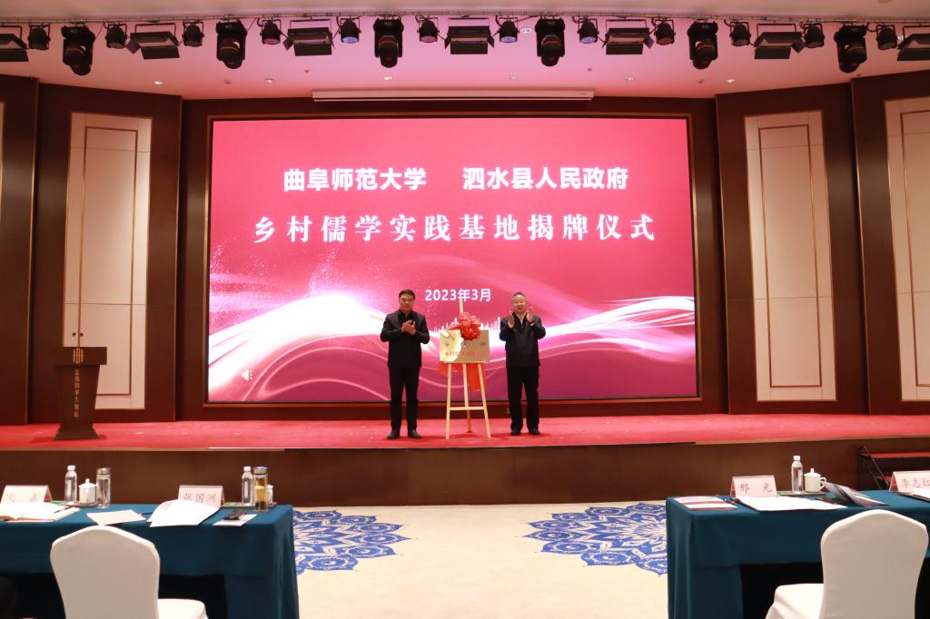 学校党委书记邢光,济宁市委常委、政法委书记张国洲共同为HUANYING.COM乡村儒学实践基地揭牌。
