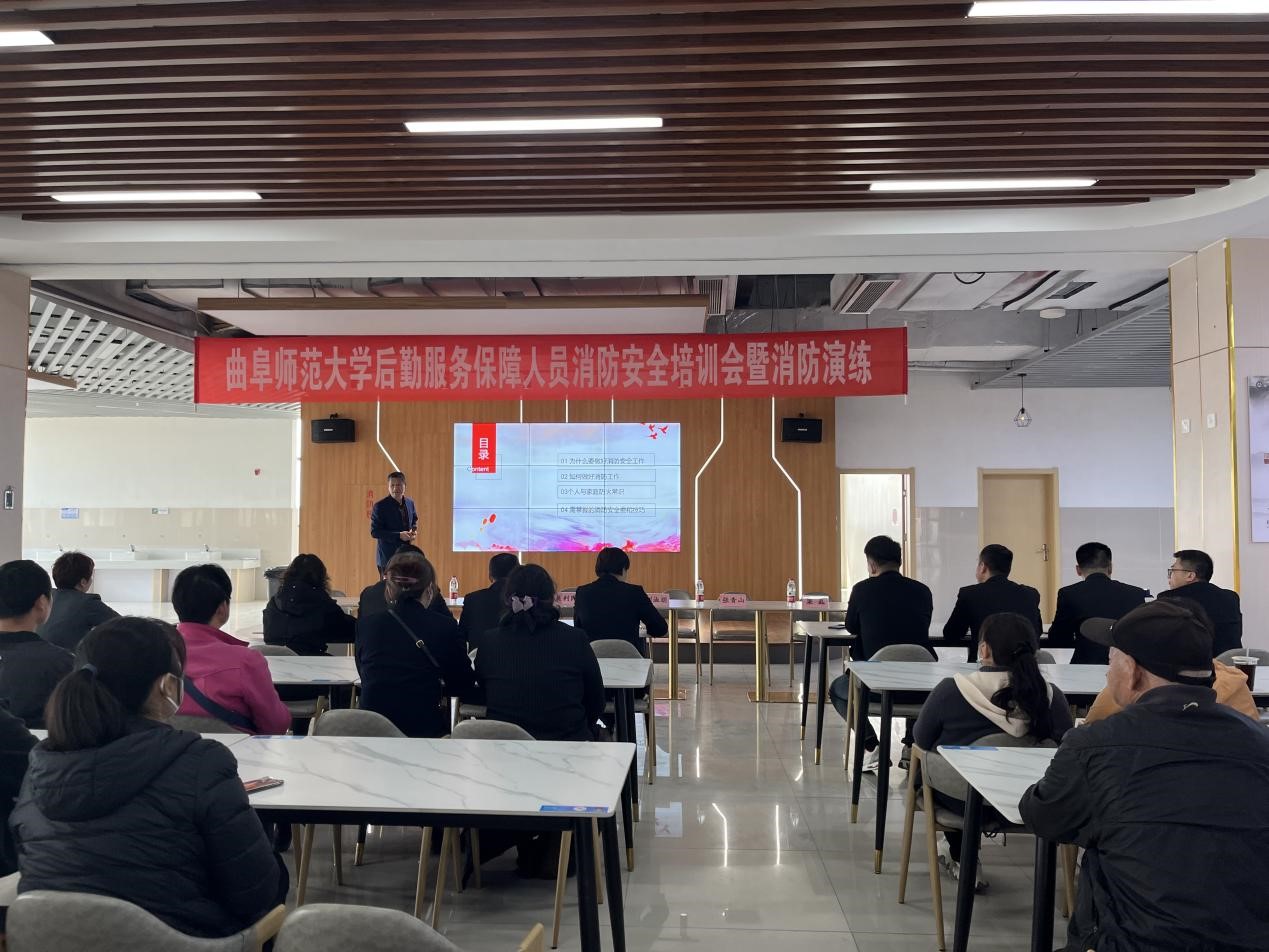 曲阜师大后勤管理处讯  3月31日下午,曲阜师大组织后勤从业人员开展消防安全知识讲座和灭火演练活动,校党委常委、副校长陈刚出席活动。