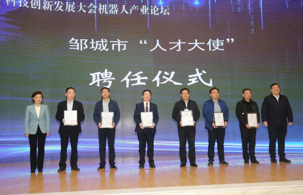 曲阜师大国内合作处讯   4月9日下午,党委常委、副校长纪洪涛赴邹城市参加济宁市人才科技创新发展大会。本次会议推动校地签署战略合作协议、产学研合作协议,成立省级院士工作站,颁发“人才大使”聘书,开展机器人产业高峰论坛,落实成果发布与推介。会上,纪洪涛代表学校与邹城市委常委、副市长满人源签署了全面战略合作协议,曲阜师大杨月伟教授被授予邹城市“人才大使”称号。学校国内合作处、科技处相关负责人一同参加会议。