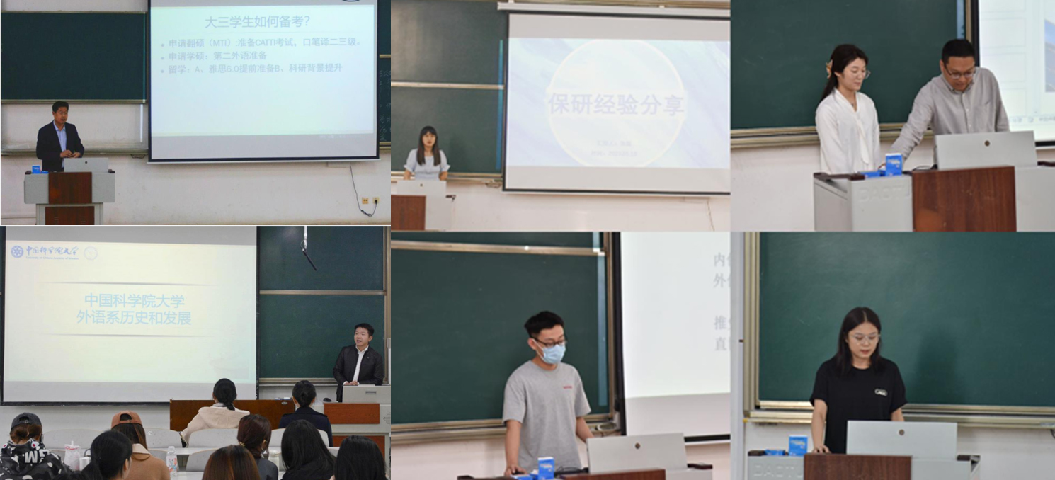 在提高学生培养质量、助力升学深造方面,学院先后举办了英语专业硕士留学及职业规划讲座、中国科学院大学硕士招生宣讲会、商务英语专业学习经验交流分享会、与马克思主义学院和地理与旅游学院联合举办2023年春季招聘专场会等。