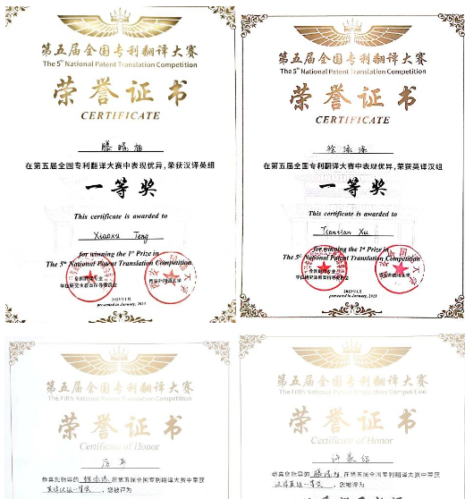 在全国翻译专业学位研究生教育指导委员会等单位指导、西安外国语大学主办的第五届全国专利翻译大赛中荣获优秀组织奖、2项一等奖、多名优秀奖和优秀指导教师奖。