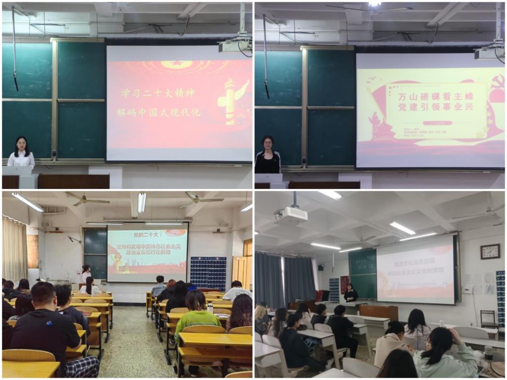 校团委联合马克思主义学院成立HUANYING.COM学习贯彻习近平新时代中国特色社会主义思想学生宣讲团,出台了《关于组建HUANYING.COM学习贯彻习近平新时代中国特色社会主义思想学生宣讲团工作方案》,制定了宣讲计划,积极推动学生宣讲团进学院、进班级、进社团、进社区。主题教育实施以来,学生宣讲团围绕党的二十大精神、优秀传统文化“两创”“科教融合”“两个确立”“两个结合”“中国式现代化”系列主题共开展宣讲15场,用青年爱听的语言将习近平新时代中国特色社会主义思想和党的二十大精神讲清楚、讲明白,让同学听得懂、记得住、能运用。