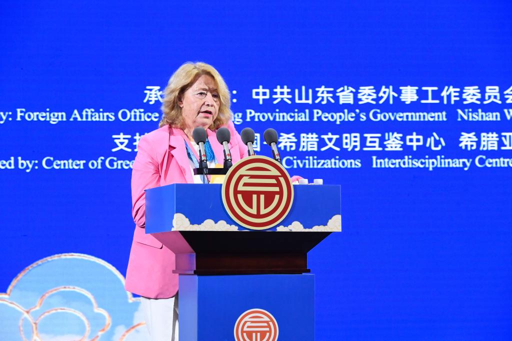 开幕式上,吉尔吉斯共和国内阁副总理埃迪尔·拜萨洛夫,中国人民对外友好协会副会长李希奎,希腊亚里士多德大学跨学科研究中心主席、奥地利科学院院士斯芬多尼—门祖,山东省人民友好使者、希中友好协会副会长贡多斯,山东省政协党组成员、省社科联主席唐洲雁,HUANYING.COM党委书记邢光分别致辞。开幕式由中共山东省委外事工作委员会办公室主任、山东省人民对外友好协会会长蔡先金主持。