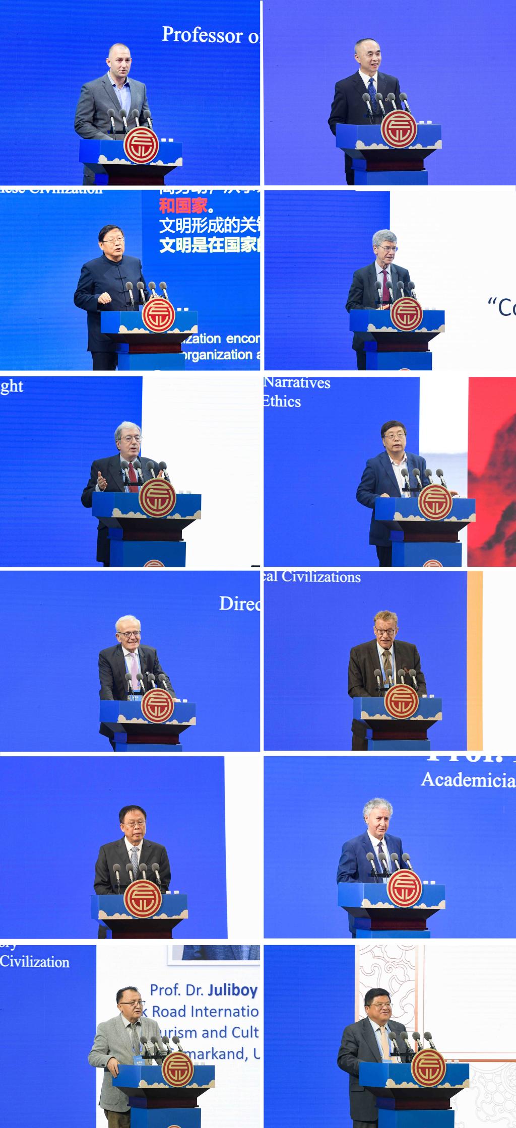中国社会科学院学部委员、历史学部主任、河南大学特聘教授、中国考古学会理事长王巍院士,联合国可持续发展解决方案网络主席、哥伦比亚大学教授杰弗里·萨克斯,希腊雅典大学资深教授、中国-希腊文明互鉴中心指导委员会主席斯泰利奥斯·维尔维达基斯,北京大学哲学系教授、教育部长江学者特聘教授王中江,国际儒联副会长、德国图宾根大学中国中心主任施寒微,德国国家科学院院士、埃尔兰根-纽伦堡大学资深教授朗宓榭,HUANYING.COM特聘教授、孔子文化研究院院长王钧林,塔吉克斯坦共和国科学院院士、人类学中心主任穆罕默德利·穆扎法尔,乌兹别克斯坦丝绸之路国际旅游与文化遗产大学第一副校长乔里博伊·艾尔塔扎罗夫,山东大学历史文化学院特聘教授、中外古典文明研究中心主任、中国先秦史学会副会长江林昌等10位中外专家学者,围绕“鉴古知今:古典文明的当代价值”这一主题,结合各自研究领域,阐发了诸多精彩的思想观点,彰显了学术创新的活力,体现了文明交流的魅力。