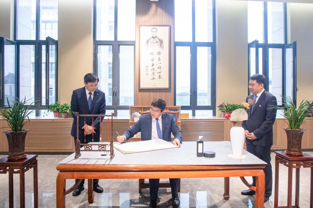 参观过程中,拜萨洛夫还欣赏了音乐学院师生的雅乐舞展演,欣然为教师博物馆题词,表达对博物馆和中吉两国友好的美好祝愿。参观结束时,拜萨洛夫接受了邢光代表学校赠送的博物馆文创纪念,同在场的师生合影留念,祝愿中吉两国以文化为纽带增进友好交流,发展两国友谊。