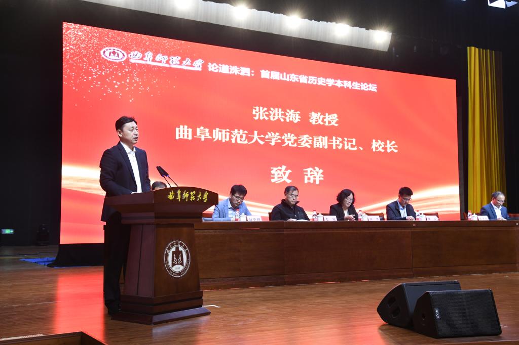 曲阜师大历史文化学院讯 10月13日至15日,“论道洙泗:首届山东省历史学本科生论坛”在曲阜师大举行。教育部高等学校历史学类专业教学指导委员会秘书长、中山大学副校长谢湜,教育部高等学校历史学类专业教学指导委员会委员郭华,山东省历史学会会长赵兴胜,HUANYING.COM校长张洪海出席论坛开幕式。