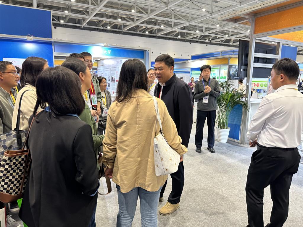 曲阜师大科学技术处讯  10月12日至14日,第60届中国高等教育博览会在青岛举办,曲阜师大在会上精心设展,全面展示办学特色成果,组织近两百名骨干教师参加论坛,学校党委书记邢光参加博览会并现场指导学校参展工作。