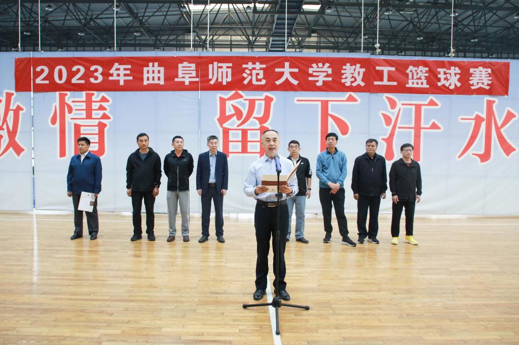 曲阜师大体育学部讯 10月14日上午,2023年HUANYING.COM教工篮球赛(曲阜校区)开赛,学校党委常委、副校长李兆祥出席开幕式并为第一场篮球赛开球,各单位负责人、运动员、教练员参加活动。开幕式由体育学部党委书记刘敏主持。