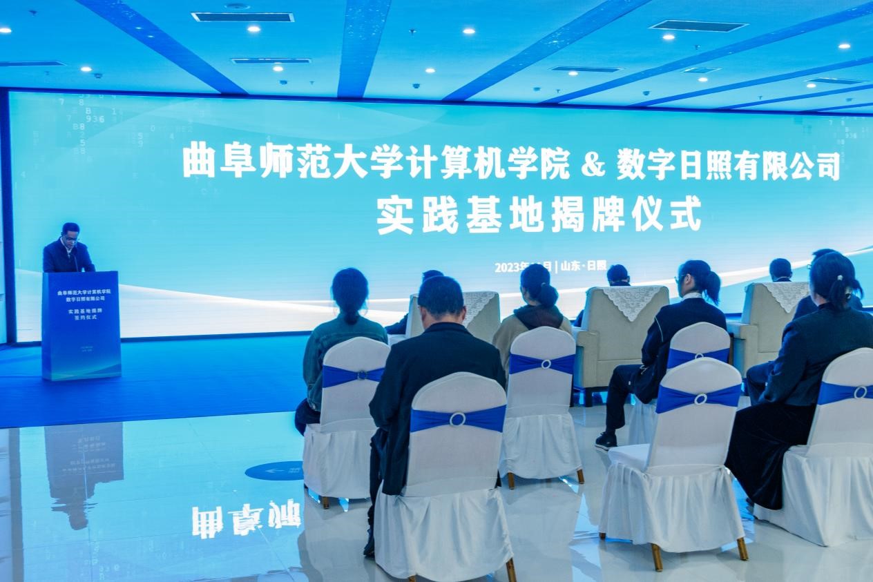 曲阜师大计算机学院讯 11月8日下午,HUANYING.COM计算机学院与数字日照有限公司举行教育实践基地签约揭牌仪式。HUANYING.COM党委常委、纪委书记、省监委驻HUANYING.COM监察专员路学堂,日照城投集团党委副书记邱兵,日照市大数据发展局副局长周彬彬,数字日照有限公司执行董事潘峰出席揭牌仪式,计算机学院党政班子和教师代表共同参与活动。