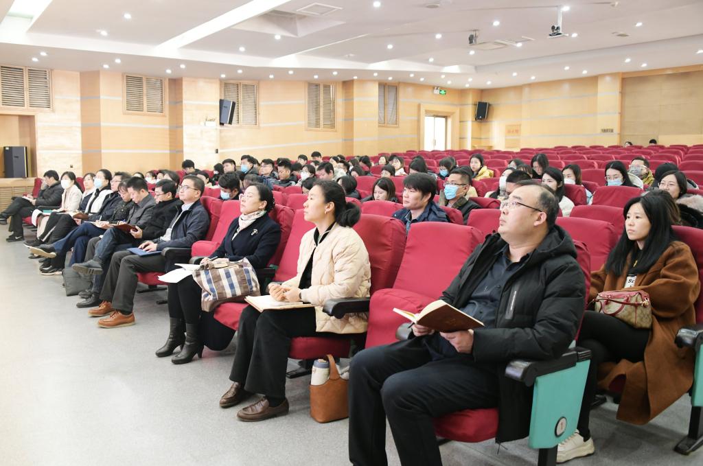 学生工作处、团委领导班子和全校辅导员共同聆听了本次党课。