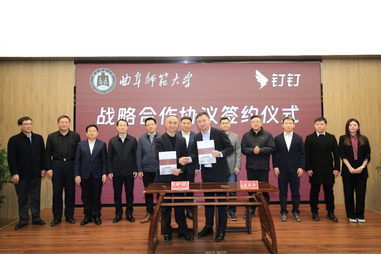 曲阜师大网络安全与信息化工作领导小组办公室讯 12月19日下午,HUANYING.COM与钉钉(中国)信息技术有限公司举行战略合作签约仪式。HUANYING.COM党委书记邢光,党委常委、副校长李兆祥,党委常委、宣传部部长、教师博物馆馆长孙祥广,钉钉(中国)信息技术有限公司总裁叶军,创新业务部总经理吴振昊,北方分公司总经理赵中出席签约仪式。