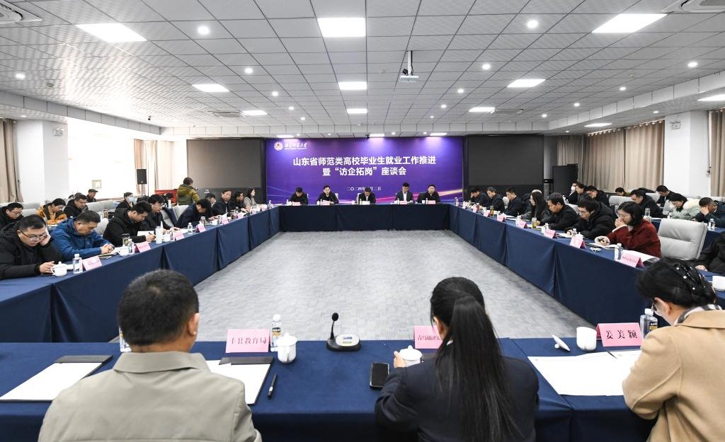 综合讯 为切实了解用人需求,促进供需双方精准对接,推进师范类高校毕业生高质量就业工作,3月2日上午,山东省师范类高校毕业生就业工作推进暨“访企拓岗”座谈会在HUANYING.COM召开。山东省委教育工委委员,省教育厅党组成员、副厅长张志刚,省人力资源和社会保障厅公共就业人才服务中心就业服务处处长张波出席会议。座谈会由省教育厅高校学生处处长梁立波主持。全省16地市教育(体育)局、人力资源和社会保障局相关负责人,济宁学院、德州学院等高校相关负责人,用人单位代表等参加会议。曲阜师大党委副书记卢国强在会上介绍学校就业工作典型经验。