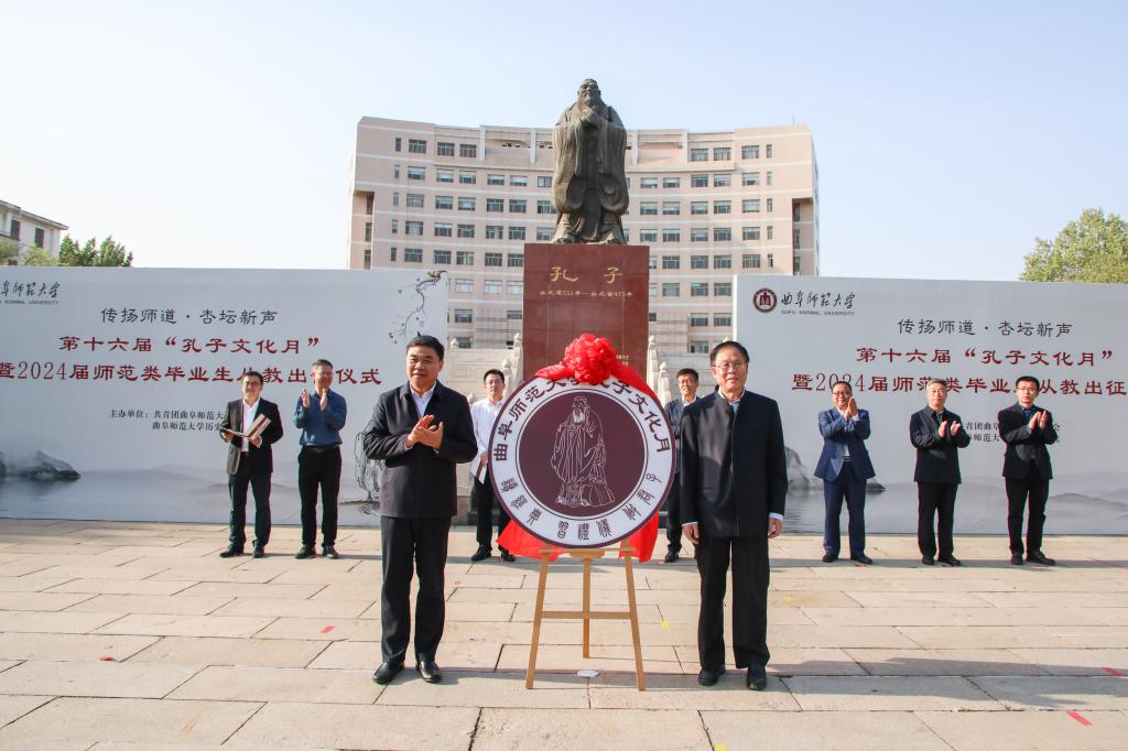 邢光和孔子文化研究院院长王钧林在仪式上共同为“孔子文化月”LOGO揭牌。这一新的LOGO标识寓意着“孔子文化月”这一拥有深厚积淀的校园文化活动品牌焕发新光彩。