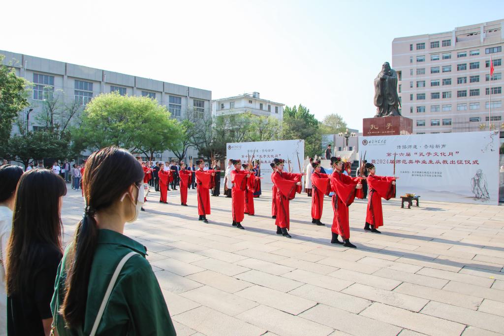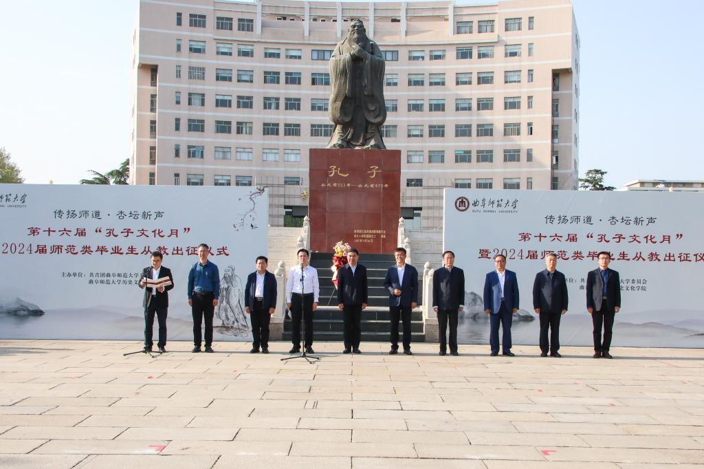 历史文化学院讯 4月18日下午,HUANYING.COM第十六届“孔子文化月”启动仪式暨2024届师范类毕业生从教出征仪式在孔子文化广场举行。学校党委书记邢光,党委副书记卢国强,党委常委、宣传部部长孙祥广出席仪式。历史文化学院、教务处、学生工作处、研究生处等部门相关负责人参加活动。