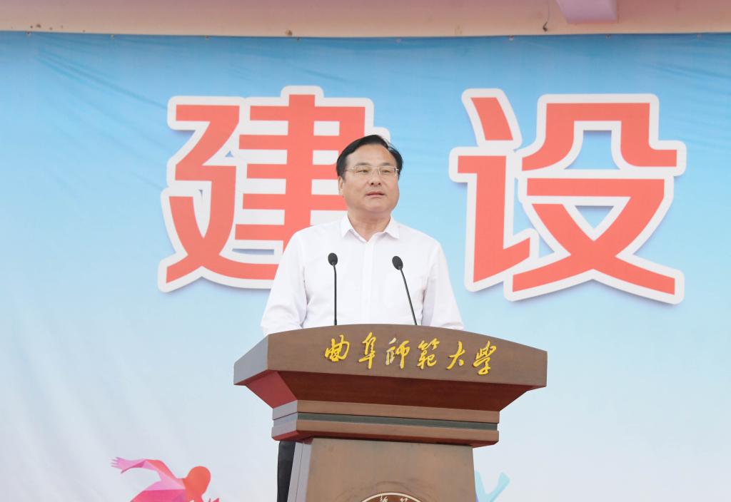 颁奖仪式结束后,陈刚致闭幕词。他代表学校党委对运动会取得的优异成绩表示热烈祝贺,向为大会付出辛勤劳动的全体教练员、裁判员和工作人员表示衷心感谢。陈刚指出,本次春季运动会,是落实“五育并举”和“健康第一”育人理念的具体行动,是学校深入开展阳光体育、深化体育教育教学改革的重要组成部分,是对体育教学成果的一次全面检阅。本次运动会充分展示了学校师生的运动水平和精神风貌,是一次隆重、热烈、精彩、圆满的体育盛会。广大师生积极参与,彰显了奋发进取、团结协作、甘于奉献的精神风貌。运动会顺利完成各项竞赛项目,获得了精神文明和物质文明双丰收,对于进一步增强全校师生员工的凝聚力和向心力,激发全民健身的热情,推动学校体育事业和校园文化建设取得更大进步,必将起到积极的促进作用。希望全校师生以本次运动会为契机,把加强锻炼、增强体质、追求健康作为自己生活的一部分,在体育锻炼中享受乐趣、增强体质、健全人格、锤炼意志,将顽强拼搏、勇于超越的体育精神内化为勇挑重担、勇克难关的奋斗态度,磨砺出更好更强的身心素质,以崭新姿态投入到今后的学习和工作中,奋力谱写高水平孔子家乡大学建设的青春篇章!