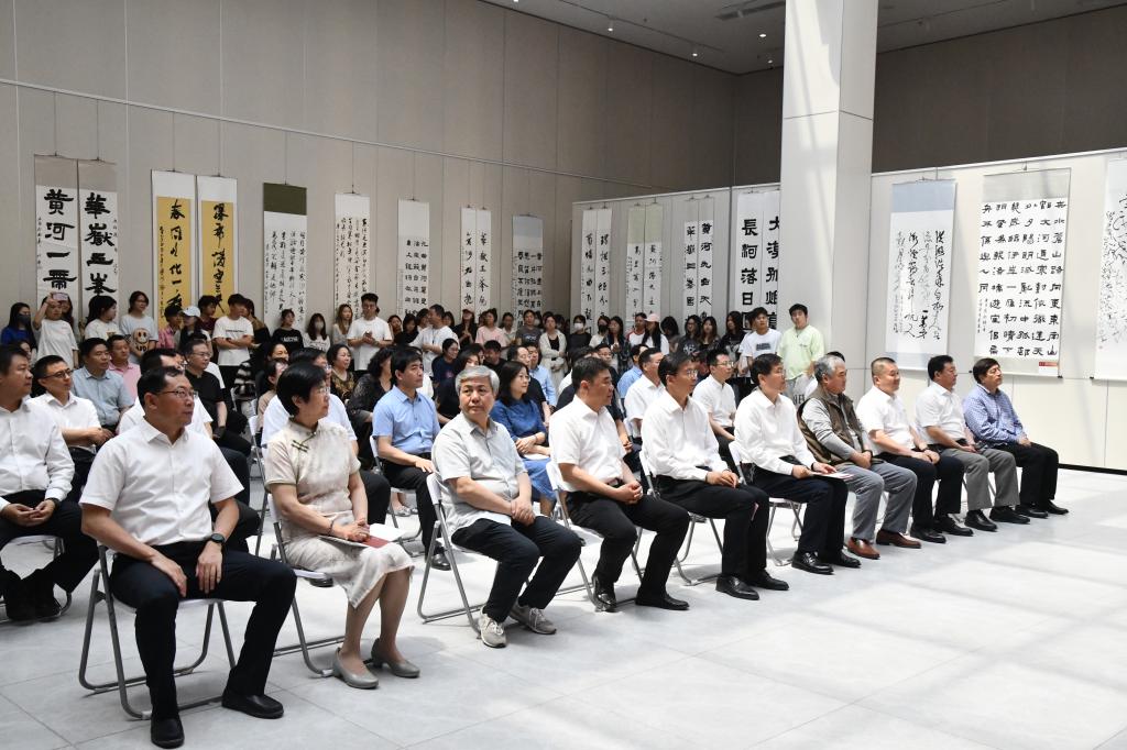 山东黄河河务局党组书记、局长赵银亮,济宁市人大常委会副主任张茂瑞,山东艺术学院原党委书记马东骅,中国书法家协会副主席顾亚龙,山东黄河河务局党组成员、副局长姜东生,中国书法家协会评论委员会秘书长张瑞田,山东省美协副主席、山东省文艺研究院院长王宇鹏,山东省文艺评论家协会驻会副主席、秘书长王之明,HUANYING.COM党委书记邢光,党委副书记李志红,党委常委、副校长陈刚,党委常委、副校长纪洪涛,党委常委、宣传部长孙祥广出席活动。
