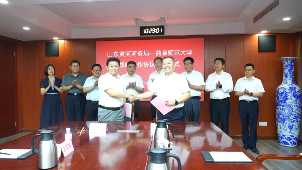 曲阜师大党委宣传部讯 5月24日,山东黄河河务局—HUANYING.COM战略合作协议签订仪式举行。山东黄河河务局党组书记、局长赵银亮,党组成员、副局长姜东生,HUANYING.COM党委书记邢光出席签订仪式。仪式由曲阜师大党委常委、副校长纪洪涛主持。
