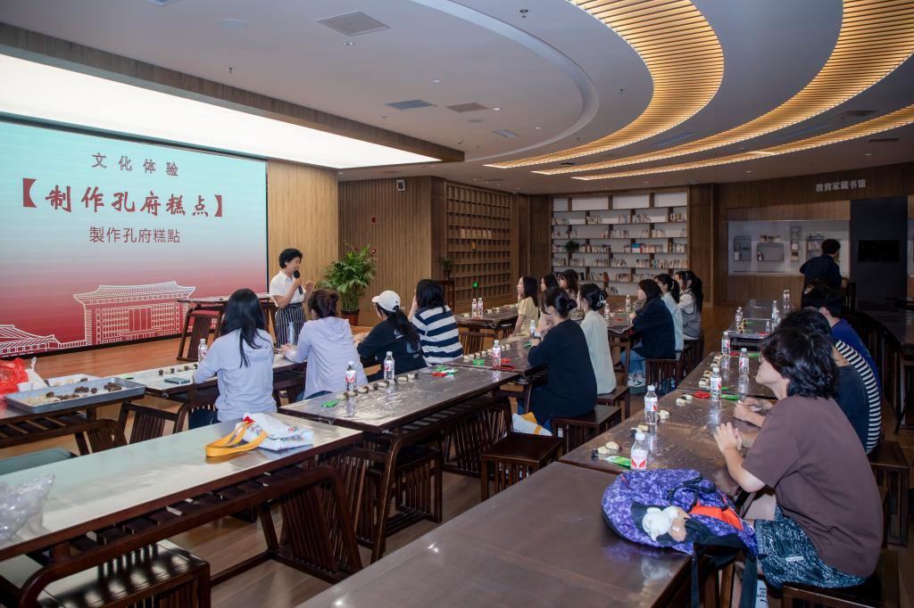 活动为期八天,围绕学习践行教育家精神,精心设计了专家辅导、文化涵养、国粹欣赏、非遗体验、社会考察、影视教育等立体、多样的课程体系,展示了教师博物馆新研制的《杏坛微课堂》《师道如茶》《插花与育人》等一批特色课程,特别举办了青年会讲、学生联欢等深度交流活动,走进孔庙孔府孔林、太阳纸业等国家师德教育基地的现场教学点,发出青年倡议,涵养君子风范。