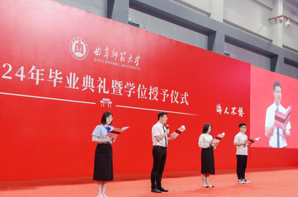 典礼上,精心编排的节目表演为毕业学子送上视听大礼,迅速拉升现场氛围、拨动青春心弦。舞蹈《杏坛弦歌》再现孔子教化的精髓,激发着孔子家乡大学师生矢志为国弘文的使命担当,国风歌曲串烧带着大家重温了美好青春韵律,原创歌曲《再见曲园》诠释出同学们对母校的爱与不舍,经典旋律《我爱你中国》唱出了毕业学子的赤热爱国之情。全场合唱校歌、传递校旗的环节,让同学们在浓浓的仪式感中再次拉满曲园人的荣誉感。