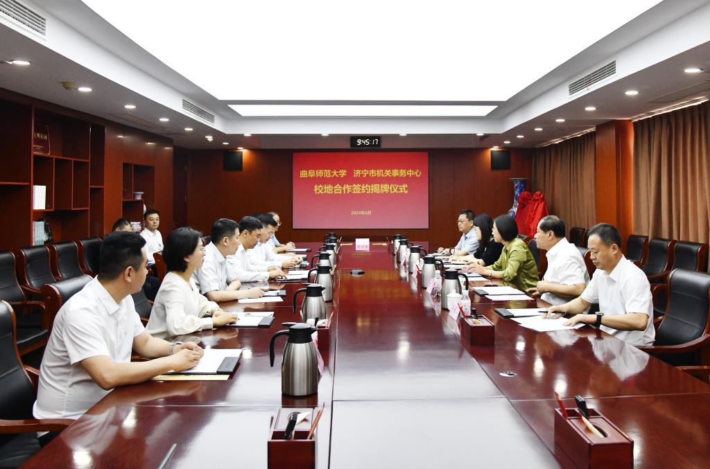 政治与公共管理学院党委书记卢瑞霞与济宁市机关事务中心党组书记、主任李成山签订合作框架协议。学校教务处处长李傅山与济宁市机关事务中心党组成员、副主任王大勇签订教学实习基地协议书。