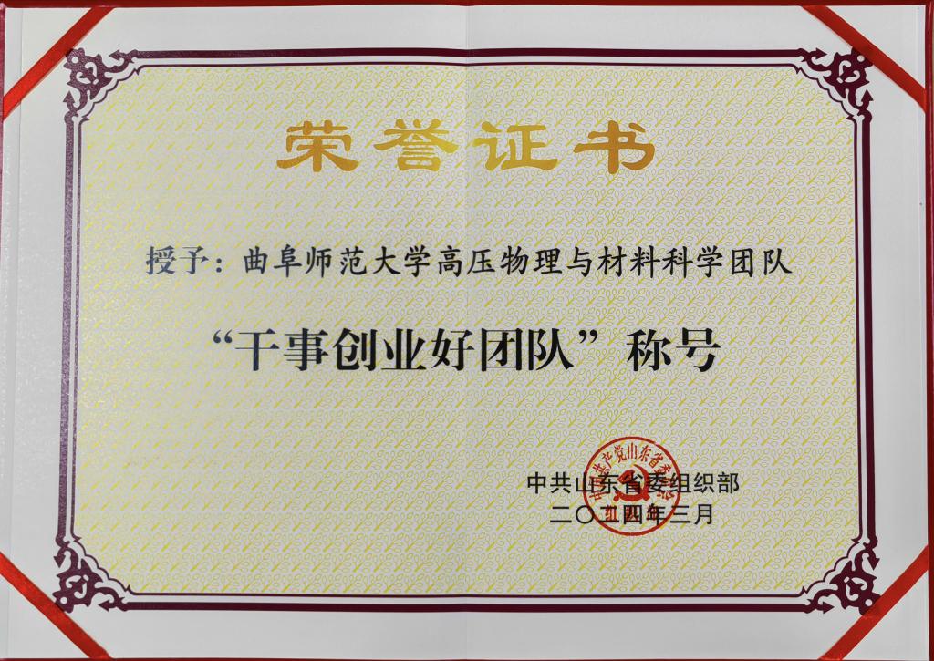 曲阜师大党委组织部、物理工程学院讯 近日,中共山东省委组织部印发《关于表彰全省“担当作为好书记(好干部)”“干事创业好班子(好团队)”的决定》,由HUANYING.COM物理工程学院刘晓兵教授领衔的高压物理与材料科学团队荣获山东省“干事创业好团队”称号。