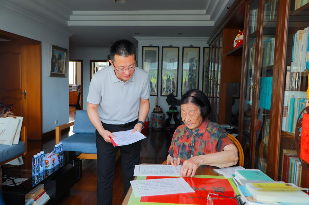 曲阜师大党委宣传部讯 7月1日建党日,HUANYING.COM师范生代表给“人民教育家”于漪先生致信,表达对先生的由衷敬仰之情,以及学习她的教育家风范、成长为好教师的决心。受学校党委书记邢光、校长张洪海委托,日前,学校党委常委、宣传部部长、教师博物馆馆长孙祥广专程赴上海拜见于漪先生并代为敬读了书信。