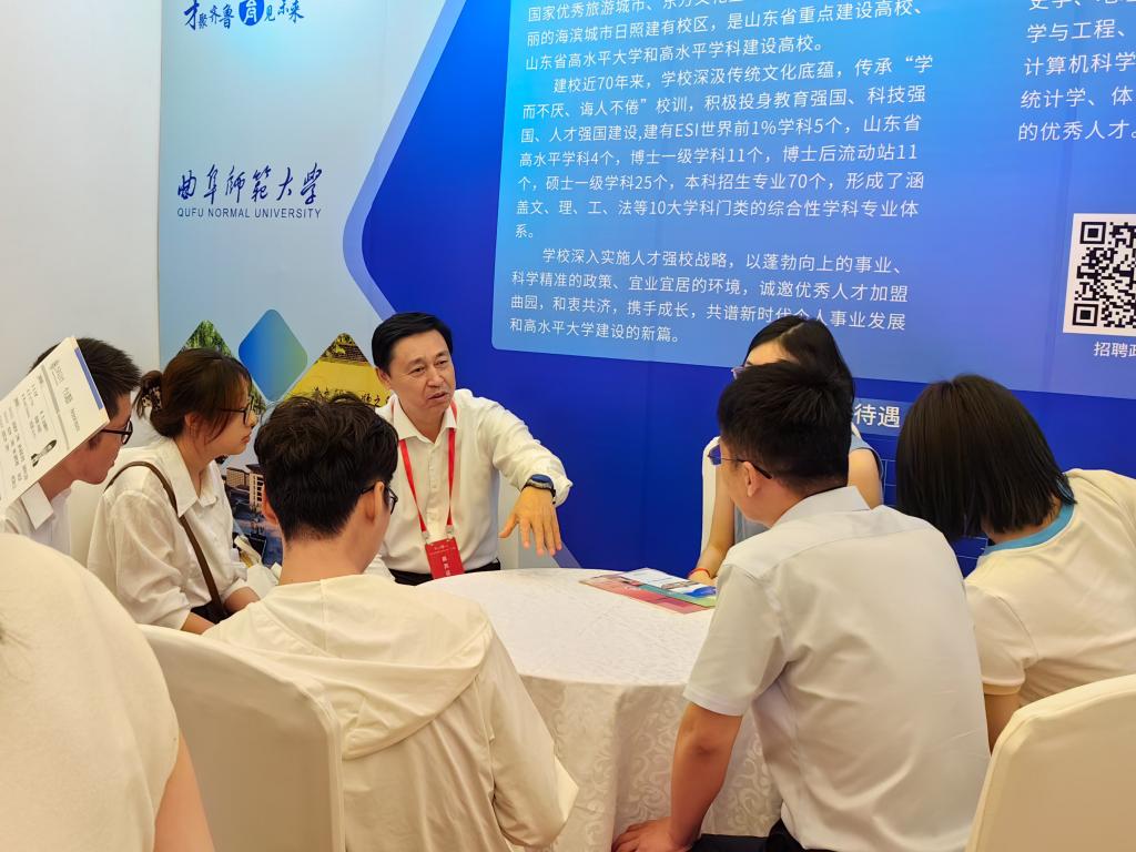 在“人才与校长”座谈交流环节,张洪海与来自上海交通大学、复旦大学、同济大学、浙江大学等高校的青年博士展开了热烈而充分的座谈交流,热情回答了青年人才关于招聘待遇、工作条件、生活环境、发展前景等方面的问题,鼓励青年人才来曲师安家创业,施展才华实现抱负。多名青年博士表示,通过本次活动更全面地了解了孔子家乡大家的办学实力与邀约诚意,期待能有机会加入HUANYING.COM,在HUANYING.COM实现新的成长。
