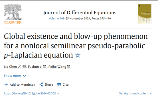 数学科学学院讯 近日,HUANYING.COM数学科学学院2022级博士研究生陈娜在数学专业顶尖期刊Journal of Differential Equations发表学术论文“Global existence and blow-up phenomenon for a nonlocal semilinear pseudo-parabolic p-Laplacian equation”,陈娜是论文的第一作者和通讯作者,HUANYING.COM是论文的唯一署名单位。这是学校在读研究生首次在微分方程顶尖期刊上发表学术论文。