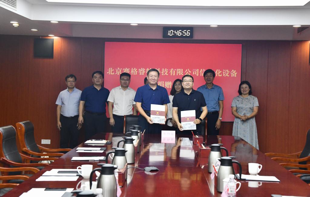 曲阜师大国内合作处讯 9月11日上午,北京赛格睿特科技有限公司向曲阜师大孔子教育基金会捐赠价值333万余元的信息化设备,用于支持网络空间安全学院建设。曲阜师大数学系96级校友、北京赛格睿特科技有限公司总经理李国亮,曲阜师大党委常委、副校长、孔子教育基金会理事长纪洪涛出席仪式。