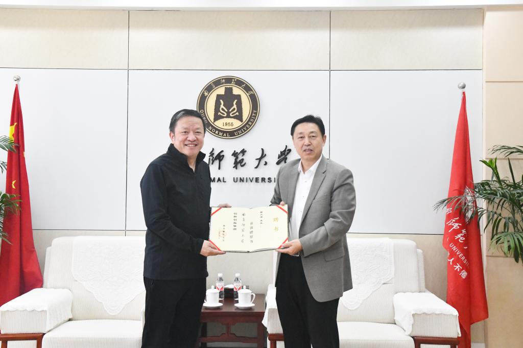 张洪海为窦大海颁发了HUANYING.COM思政课兼职教授聘书、创新创业导师聘书,并通过视频向广大校友发出回访母校的邀请,希望广大校友常回母校看看,重温曲园记忆,共铸曲园荣光。