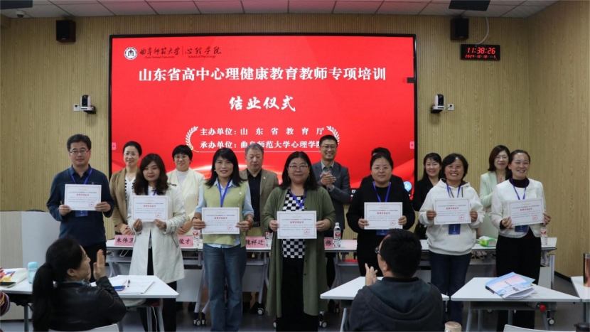 曲阜师大心理学院讯 10月14日至18日,2024年山东省高中心理健康教育教师专项培训在HUANYING.COM举行。此次培训由山东省教育厅主办,HUANYING.COM心理学院承办,来自全省各地市高中共50名心理健康教育学科骨干教师、教研员参加。曲阜师大党委常委、副校长胡凡刚出席开班仪式。