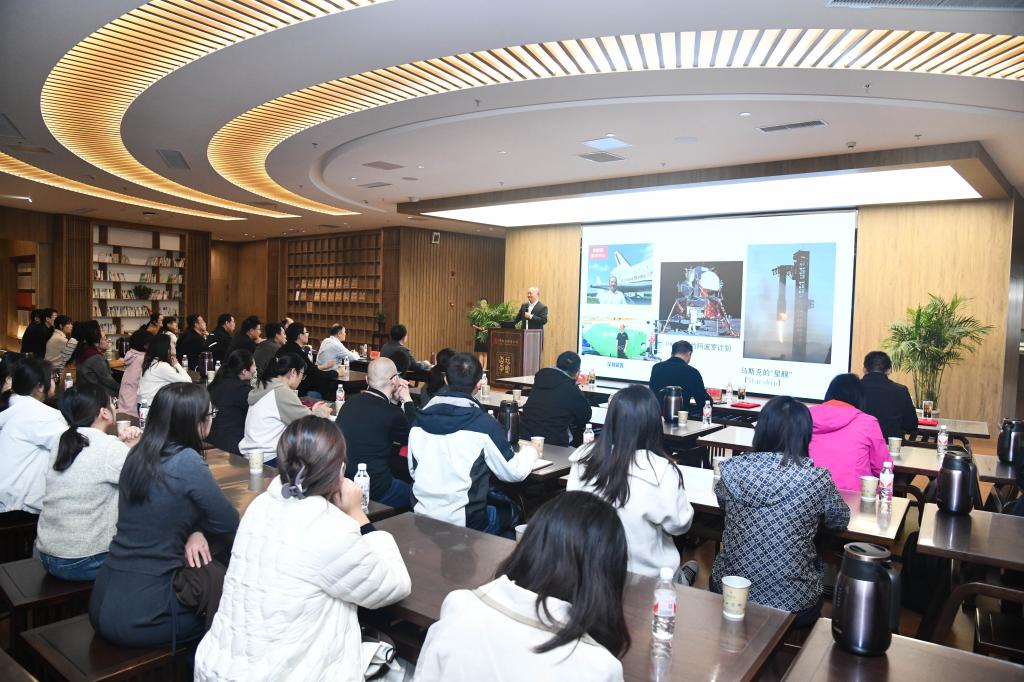 江桂斌院士在活动中作了《科技进步与文化传承》专题讲座,从科学家精神开始讲起,围绕“从古到今的科技发展”“古代文明的历史演进”“儒家思想与治学修身”三个方面,结合历史资料、科研前沿、实践案例等,阐释了科技与文化传承的历史背景和现实意义,重点探讨了基础科学研究的重要性、科技进步对现代文明的贡献、儒家思想和治学修身对教育家精神和科学家精神养成的积极作用等。